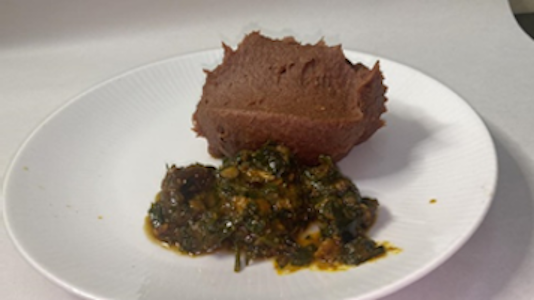 Mix millet flour with 1 cup tepid water and pour mixture into 2 cups boiling water.